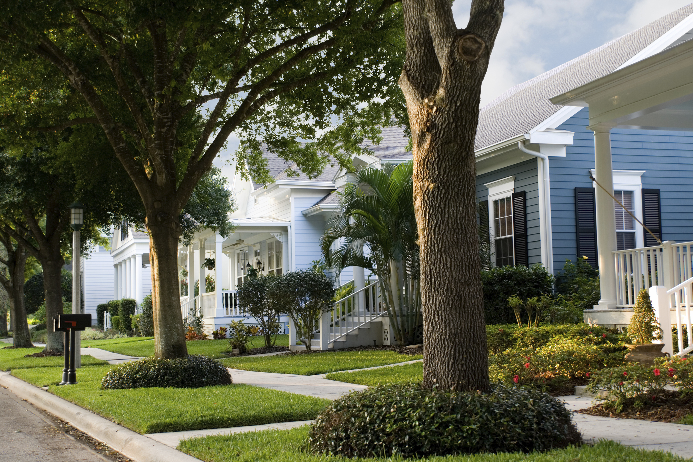 neighborhood street scene in small American town